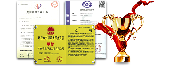 三级承包资质、高新技术企业、软件著作权资质、水处理设备资质,ISO9001质量体系等